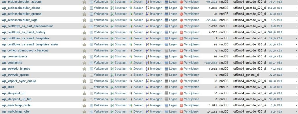 - Verwijder ongebruikte plugins en thema’s, die vaak extra tabellen achterlaten.